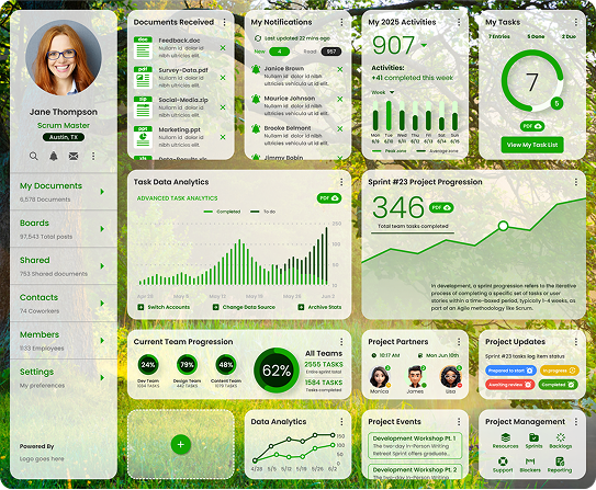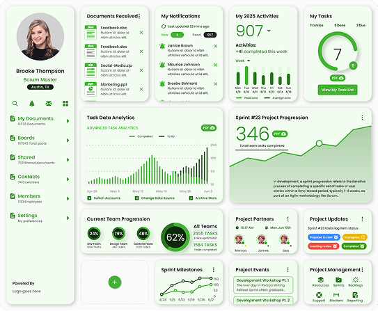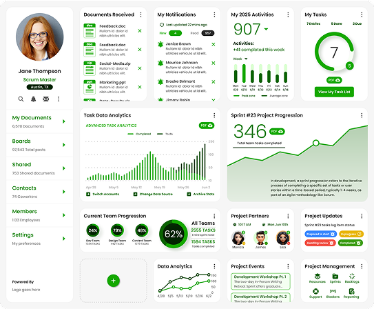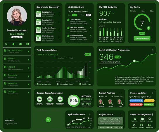Provides a centralized, real-time overview of all ongoing tasks and projects. It also transforms into actionable insights by showing key performance indicators (KPIs), trends, and patterns, with data visualization of analytics broken down by individual teams. This helps a project manager ensure that deadlines are being met.